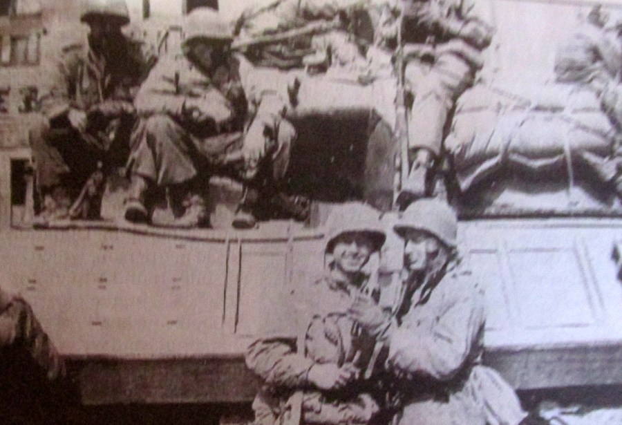 “We slogged along a couple miles to the south and then turned east on a road that ran through a valley with high hills on each side. Pretty soon we came upon some blown-up Jeeps and a few halftracks from the 10th Armored Division. We all smelled trouble.