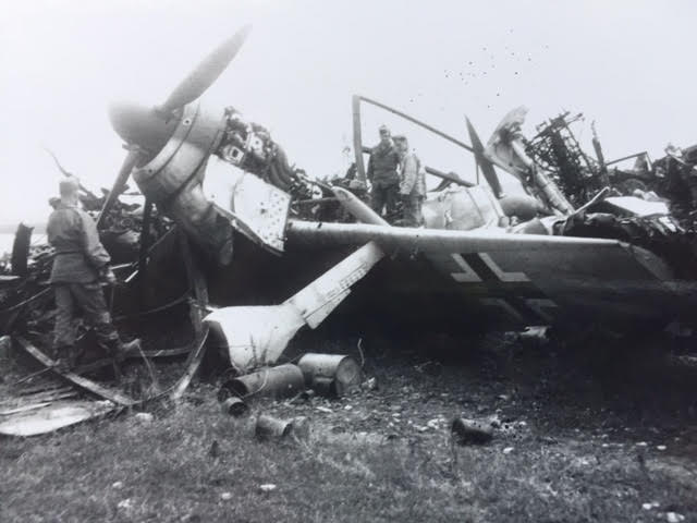 This junk yard of scrap German military planes was near Hof, Bavaria where Scaruffi was based at the close of the Second World War. Photo provided.