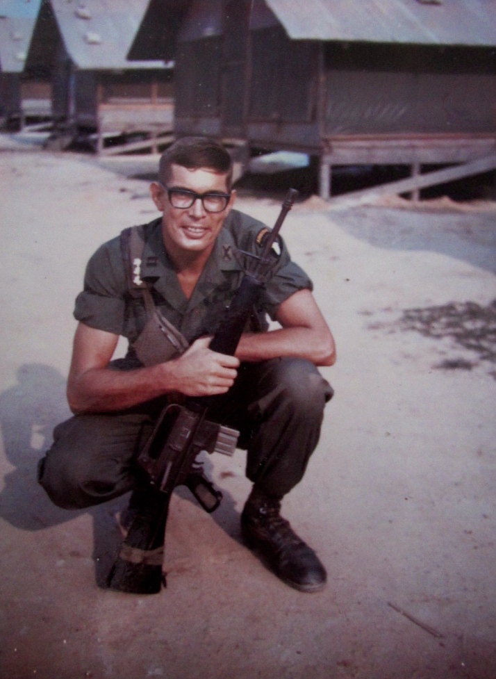 1st Lt. Donihue holds his M-16 rifle at Camp Eagle, the 101st’s main base of operation in I-Corps near the enemy-infested A-shau Valley. Photo provided