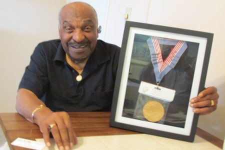 Former Pfc. Lavern Hampton of Port Charlotte, Fla. served in 5 European campaigns during WW II